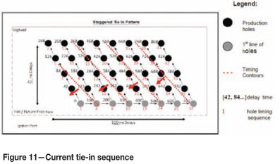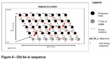 Finally, during the pit visits it was observed that the tie-in sequence was incorrect. The surface shock tube delays were connected in a square pattern, while the design requires a staggered pattern.