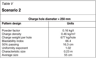 ► Scenario 2-Changing the hole diameter from the current 311 mm to 250 mm resulted in a 21.5% change in the average fragmentation size (Table V)