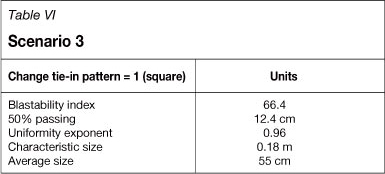 ► Scenario 3-Changing the tie-in pattern from staggered (1.1) to square (1.0) resulted in no change in the average fragmentation size (Table VI)