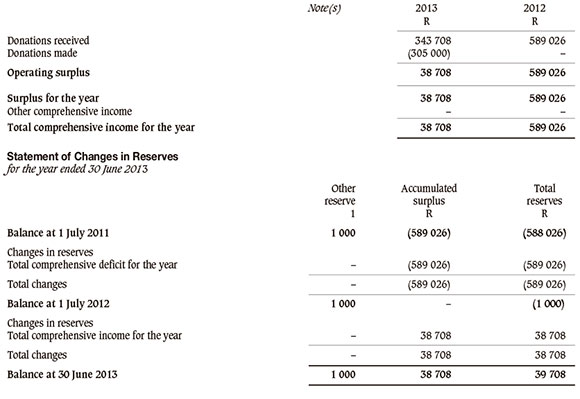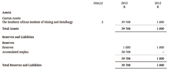 I have audited the annual financial statements of The SAIMM Scholarship Fund, which comprise the statement of financial position as at 30 June 2013, the statement of comprehensive income, statement of changes in reserves and statement of cash flows for the year then ended, and a summary of significant accounting policies and other explanatory notes, and the trustees' report.
