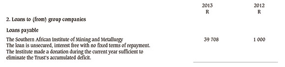 This includes a loan to The Southern African Institute of Mining and Metallurgy; the loan earns no interest, nor does it have any terms of repayment. This loan is carried at cost.