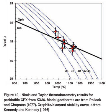 Figure 12 which was printed in the Rogers paper in the SAIMM Journal in July 2013 entitled, 'KX36-rediscovering the diamond exploration potential of the central Kalahari in Botswana', by A.J. Rogers, T.G. Hough, and J.M. Davidson, vol, 113, no 7, pp. 539-545 was incorrectly printed.