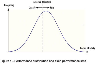The best way to express performance uncertainty is to describe it in the form of a distribution (e.g. probability density function) related to a fixed limit (e.g. threshold of performance criteria) as shown in Figure 1.