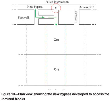 3. A new bypass will be developed to mine out the stopes associated with failed intersection, as shown in Figure 10.