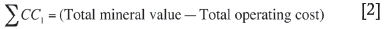 First, the cost of consequence of unmined stopes (CC1) due to intersection failure or blockage is calculated as follows: