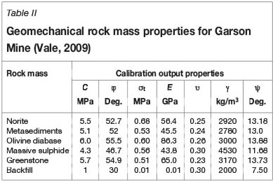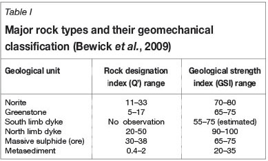 The rock mass qualities of the main units are summarized in Table I (Bewick et al., 2009). The physical and geomechanical properties of rock mass used in numerical modelling for each geological unit are presented in Table II (Vale, 2009).