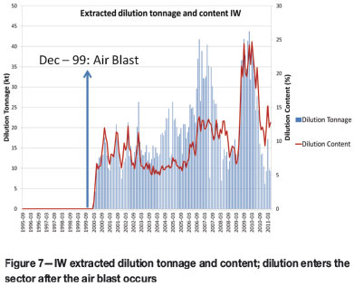 Dilution entry after an air blast event (caving dilution)