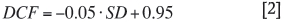 where HIZ is the height of the interaction zone, Hc is the draw column height, S is the swell factor of the column, and DCF is the draw control factor, which is determined from the standard deviation of the tonnage extracted from the working drawpoints normalized by 100 at a monthly scale (SD ) as:
