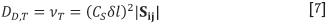 Here, Sij is the strain rate tensor, which may be determined from the velocity field. 5l is a length parameter representing the size of the numerical mesh elements at any given location, and CS is a dimensionless empirical constant with value 0.16 - 0.2. Evaluation of Equation [7] gives a turbulent diffusivity field, and the total diffusivity to be used in Equation [4] may be calculated from DD= DDM+ DDT.