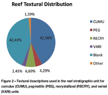 Texturally, the unaltered reef lithologies (feldspathic pyroxenite and pyroxenite) are dominated by a cumulate textures, while altered reef lithologies are dominated by a recrystallized texture (Figure 2).