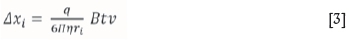The Lorentz force effect on ions in the bulk of the solution can only be determined by Equation [1]. This Lorentz force results in the shifting of ions both in the bulk solution and close to the particle surface (Lipus, Krope, and Crepinsek 2001). However, this ion shift is retarded by the liquid viscosity force. The viscosity force is equal to the Lorentz force in accordance with Newton's law for force balance. As a result, the Lorentz ion shift Δ x¡ is derived from this relationship via Equations [1] and [2]: