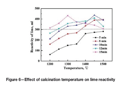 Effect of calcination temperature on lime reactivity
