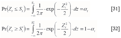 Equation [33] shows the constraint related to the lower bound of the grade blending constraint. The values of Stand S' are calculated by taking the integral of standard normal distribution function as given in Equations [31] and [32].