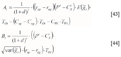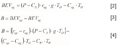In Equations [1] to [4], the economic net value of a waste block is negative, since a waste block imcurs removal cost without any profit. The NPV resulting from combined open pit and underground mining is obtained by Equation [5].