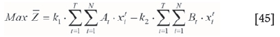 These values are substituted in the objective function, which is written as Equation [45].