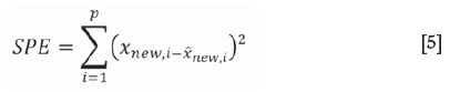 The SPE chart is a multivariate chart that measures the amount of variation in each observation not captured by the a PCs retained in the PCA model. This is accomplished by calculating the SPE of the residuals of new observations (Kourti and MacGregor, 1995):