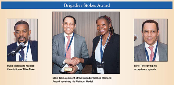 Selo Ndlovu: The Brigadier Stokes Memorial Award was instituted in 1980 to commemorate the outstanding contribution to the South African mining industry made by Brigadier R.S.G. Stokes, an Honorary Life Fellow and Past President of this Institute. This is the premier award of the Southern African Institute of Mining and Metallurgy and is made to an individual for the very highest achievement in the South African mining and metallurgical industry. It gives me great pleasure to announce that the award for 2018 is to be made to Michael Solomon Teke.
