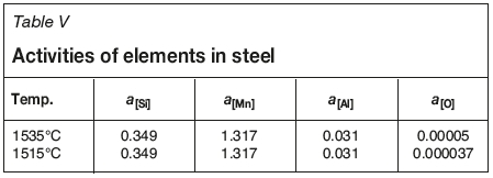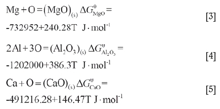 In addition to Equations [1] and [2], there are also the following equilibrium reactions between the liquid steel and inclusions in the CaO-Al2O3-MgO system (Chen, 1984).