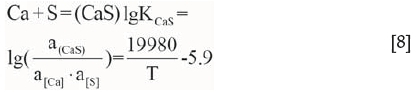The iso-activity diagrams of Al2O3, CaO and MgO in the CaO-Al2O3-CaS ternary inclusions at 1600°C were calculated by FactSage. It can be seen from Figure 5 that in order to control the CaO-Al2O3-CaS inclusions in the liquid region at 1600°C, the activities of Al2O3, CaO, and CaS should be controlled to 0.01 in 0.25, 0.1 in 0.9, and 0.1 in 0.9. In addition to Equation [7], there is also the following reaction (Equation [8]) between the molten steel and inclusions in the CaO-Al2O3-CaS system.