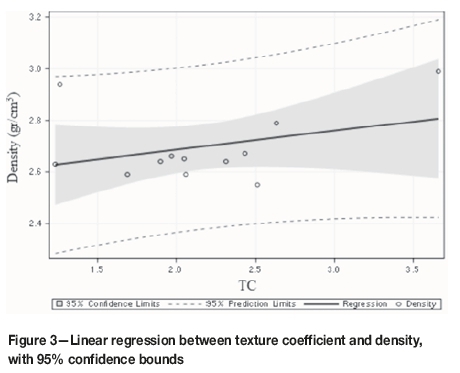 However, in rocks the mineral composition, matrix structure, and porosity are the main factors that affect density, and these parameters are not involved in the calculation of TC. Similarly to this study, Ozturk, Nasuf, and Kahraman (2014) found that the correlation between density and TC is low (r= 0.42) for marble and igneous rocks, but the correlation between TC and porosity (r= 0.96) is very high. This is explained by the fact that an increased content of elongated grains leads to an increase in porosity. In this study, although a weak significant correlation was determined (Figure 4), all samples fell within the confidence interval except the Bergama gray and unknown granite.