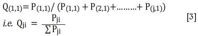 ii. For each hidden neuron,Pjiis divided by sum for all the input variables to obtain Qji (Table XV). For example for Hidden neuron1,