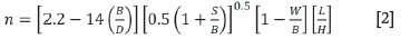 The uniformity index (n) is used to determine how even the breakage of rock is expected to be, based mainly on parameters employed during drilling (Cunningham, 2005). Equation [2] shows how the uniformity index is calculated. The uniformity index indicates the uniformity of the fragment sizes and ranges between 0.6 and 2.2 for a well fragmented blast (Adebola, Ajayi, and Elijah, 2016).