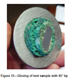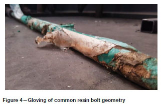 Figure 4 shows an extreme example of gloving from dynamic laboratory testing of a resin rockbolt conducted by the authors when testing a 2.4 m sample of a common paddle-type tendon with a 45° cropped tip installed in a steel pipe.