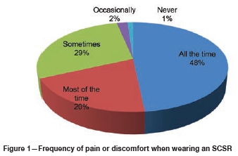 Data was captured electronically and analysed. Descriptive and comparative statistical analyses were performed on the quantitative data, at a significance level of p<0.05. Averages, standard deviations (SDs), minimum and maximum values, and percentiles were determined for each anthropometric variable, which were compared against ISO reference values, using the one-sample median test. For the practical ergonomic assessment, comparisons were made of responses obtained during the control session, when the units were worn on the belt, and when donned and in use. Comparisons of responses while using the different SCSR models were also made.