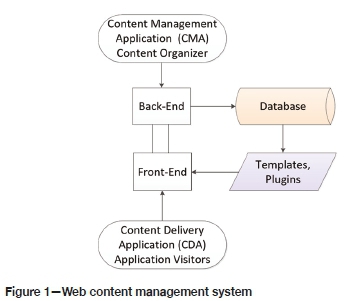 Figure 1 oulines the web content management system (Manoj and Asoke, 2016b). The person who is creating and organizing content utilizes coding skills, manipulates the database (by inserting new material such as images, videos, sound files, and text), and uses different plugins and templates to create the website. Therefore, the application, database, and server are establishing the back-end capabilities. Such an application can then be presented in a front-end environment. Here, the term 'front end' alludes to the user interface; the visitors can directly interact with the website only to see the data, objects, and other content inserted by the content organizer. Even though the front end and back end serve different purposes in the process of creating web applications, both should be user-friendly and easily accessible. After set-up, the CMS generally does not require specialized technical skills. The content manager can create, sustain, and organize the website without having coding knowledge. Such knowledge is, of course, helpful for improving the quality of the website, but not essential.