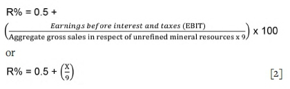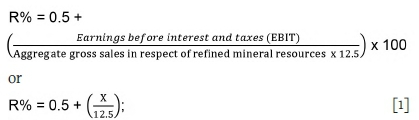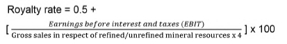 ➤ The royalty rate determined in terms of the formula for refined minerals must not be below 0.5% nor exceed 5%, while the royalty rate determined in terms of this formula for unrefined minerals must not be below 0.5% nor exceed 7%.