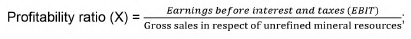 ➤ Aggregate gross sales: This is the royalty base and is defined as arm's length gross sales value in the transfer of all mineral resources, as defined in Schedule 1 and 2 of the Act (PwC, 2009b). As with EBIT, various inclusions and exclusions are applicable.