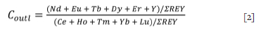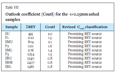 Seredin (2010) proposed the outlook coefficient (Koutl) as a rapid method for the preliminary evaluation of economic REE deposits. Dai et al (2017) provided a revised criterion for the preliminary assessment of the REY in coal ash as economic raw materials. The revised outlook coefficient (Coutl) is defined as 'the ratio of the relative amount of critical REY metals in the total REY to the relative amount of excessive REY' (Dai et al., 2017, p. 15), and is calculated as: