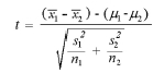This is a standard formula used to compute the t-statistics for observations in the samples such as revenue, EBITDA, their mean values,- and standard deviations.