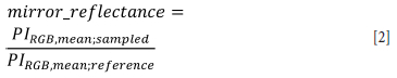 The mean PI for the mirror is then used to calculate the reflectance of the mirror as a fraction of the mean PI of a reference (calibration) mirror as follows: