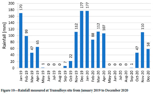 This paper is published by permission of the University of Pretoria, the University of Stellenbosch, Transalloys, and Mintek. This project has received funding from the European Union's Horizon 2020 research and innovation programme under grant agreement no. 820561. The authors would like to thank the EU Horizon programme for its continued support of research and development projects working towards a sustainable future. Further gratitude is expressed to the CSIR for the use of their reflectometer, and to the Southern African Universities Radiometric Network (SAURAN) for providing research-quality meteorological data. Melanie Smit (Mintek) is also thanked for her contribution to the dispersed dust characterization work.