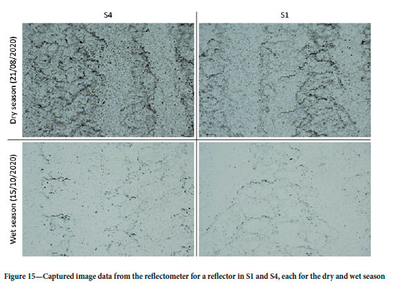 An average reflectance loss of 32.6% for all for sampling sets was observed for the 14-day sampling periods during the dry season. If, however, the poorly sited reflector set S3 is excluded, an average loss of 22.6% is obtained.