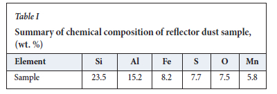 There is a complex relationship between meteorological comditions, site location, and reflector soiling (Pennetta et al., 2016; Bouaddi, Ihlal, and Fernández-García, 2017). The performance of a CS plant depends on proper reflector cleaning strategies, which constitute a large part of operational and maintenance costs (Picotti et al., 2020). This paper deals with soiling of solar reflectors in the vicinity of a ferromanganese smelter by industrial dust. The aim the study is to lessen the challenges involved in integrating CST technology into EIIs. The questions asked are: