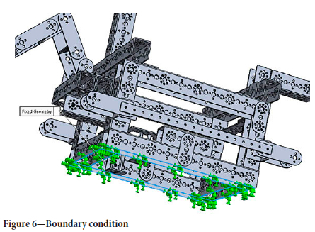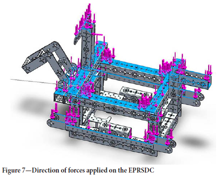The calculated forces were applied to different components of the crawlers frame as seen in Figure 7.