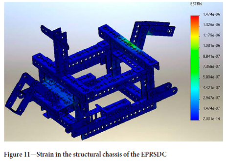 Figure 11 delineates the strain distribution across the EPRSDC model, portraying the material's physical deformation in response to the applied force. Strain is defined as the ratio of the change in length to the original length of a solid material model.