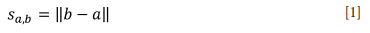 where a and b are two vectors representing two n-dimensional points in space and ||b - a|| is the L2-norm (Euclidean norm)
