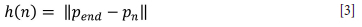 The A* algorithm seks to minimize the distance between points within a path with the use of a cost function and a heuristic function. Following from Equation [1], the cost function is considered here as the Euclidean distance between the current position and the next position: