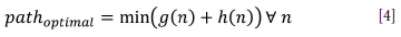 Following Equations [2] and [3], the A* algorithm iteratively creates a path such that: