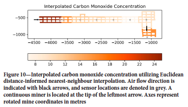 The cost and time associated with expanding air quality monitoring capabilities in underground mines poses as significant barrier to improved ventilation system monitoring and control. Current AMSs have wide-ranging utility as early warning systems for mine fires in underground coal mines, but offer no currently accepted method to infer the distribution of gases between sensors (Shriwas and Pritchard, 2020). This lack of data ultimately limits the functionality of the AMS; gas distribution data is virtually inaccessible to AMS operators because of the location-specific nature of sensor data.