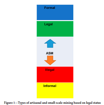 ► Informal/illegal: South Africa is an example where most ASM activity is both informal and illegal, not supported, conducted outside of the law, and criminalized. There is normally a high degree of irresponsibility because the miners are not registered and therefore not accountable.