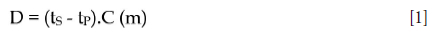 where (tS - tp) is the time difference between the P- and S-wave picks (s) and C is 8875 m/s.