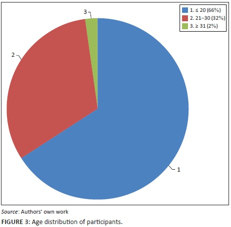 Figure 3 represents the age distribution of the participants. Most participants were younger students. Participants who were 20 and under totalled 81 (66.4%), 39 (32%) were between 21 and 30 years, while just 2 (1.6%) were older learners who were between 31 and 45 years of age. There were 99 (81.1%) participants who were full-time students, 12 were part-timers (9.8%), 9 (0.07%) participants identified themselves as both full-time and part-time students and 2 (0.02%) were distance learning students.
