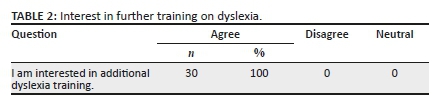 'I am willing to receive training on learners with dyslexia to broaden my knowledge and be able to assist the learners with dyslexia. I want to help them to reach their optimal potential.' (Grade 4 teacher, male, 31 years)
