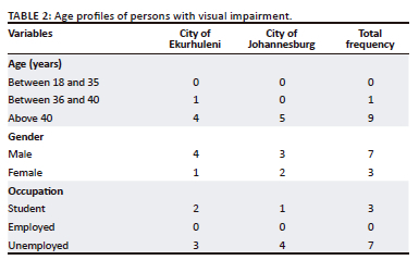 Keywords: assistive technologies; persons with visual impairment; print disability; City of Ekurhuleni (CoE); City of Johannesburg (CoJ); South Africa.