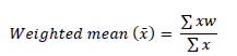 Σwx is the sum-product (multiplication of weight w by its matching valuex, and summing the resultant values) and Σx the sum of the values. The least weight (that is, 1 [one]) in a five- or three-point scale was allocated to the least desirable option while the highest weight - depending on the scale used in a question - was allocated to the most desirable option. For example, in the case where the most desirable option in a five-point scale was "strongly agree" and the least desirable option was "not at all", the former was given the highest weight (that is, 5) than the latter, which received a weight of one (that is, 1).