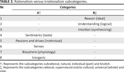 James was still in the continuation of the emancipatory project of Modernity - old-fashioned but somewhat more abstract: what formerly had been the struggle between church and state here became a serious philosophical opposition. There was a shift from the institutional level (church - already disempowered) to the level of ideas. Ideas have legs but they need good methodical shoes to ensure that they do not drag their feet. Table 1 does in fact not allow any space for 'Christian' ideas as such; Christianity is simply sublimated into the broad spectrum of 'Rationalism' (and as stated above, secularism was the overwhelmingly dominant approach in Rationalism). Religion had its place usually as part of emotional pietism (allowing for exceptions such as Kant and Hegel).
